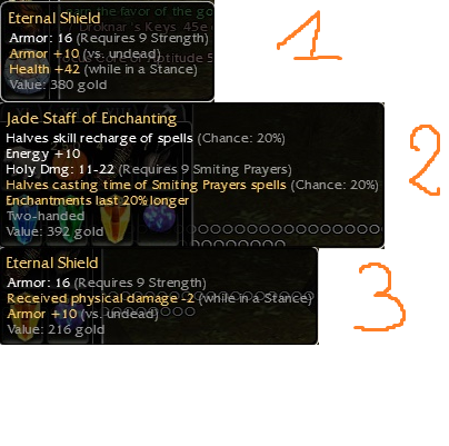 1) OS celestial Q9 tactic -5 20% +45whie enchant