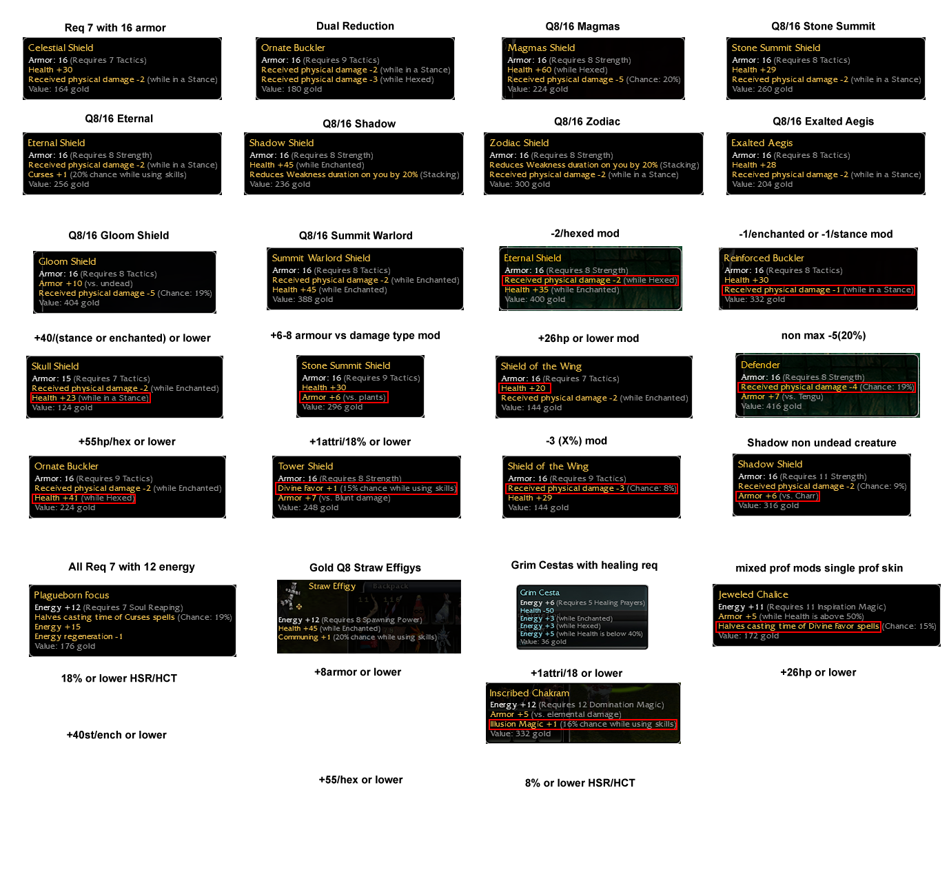 Been long overdue that the "Truth about Prenerf" thread was revamped, so here it is. Have broken this down into 4 sections, see Shields & Focus / Greens / Runes & Miscellaneous