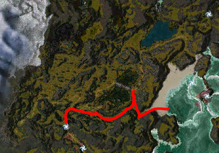 4: If you want to save a few seconds, as soon as you enter Lakeside, walk back into Ascalon City and then walk out again. That way you can /resign as soon as you pick up the shimmering scale and you can walk out and turn the quest in so you don’t have to walk all the way back. You can also let your imp finish off the bull while you make your way to Ashford, make sure it dies in compass range so you get the experience however.