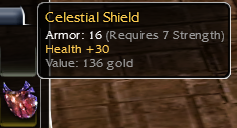 Selling an OS Celestial shield! Req 7, 16 Armor +30 Health.