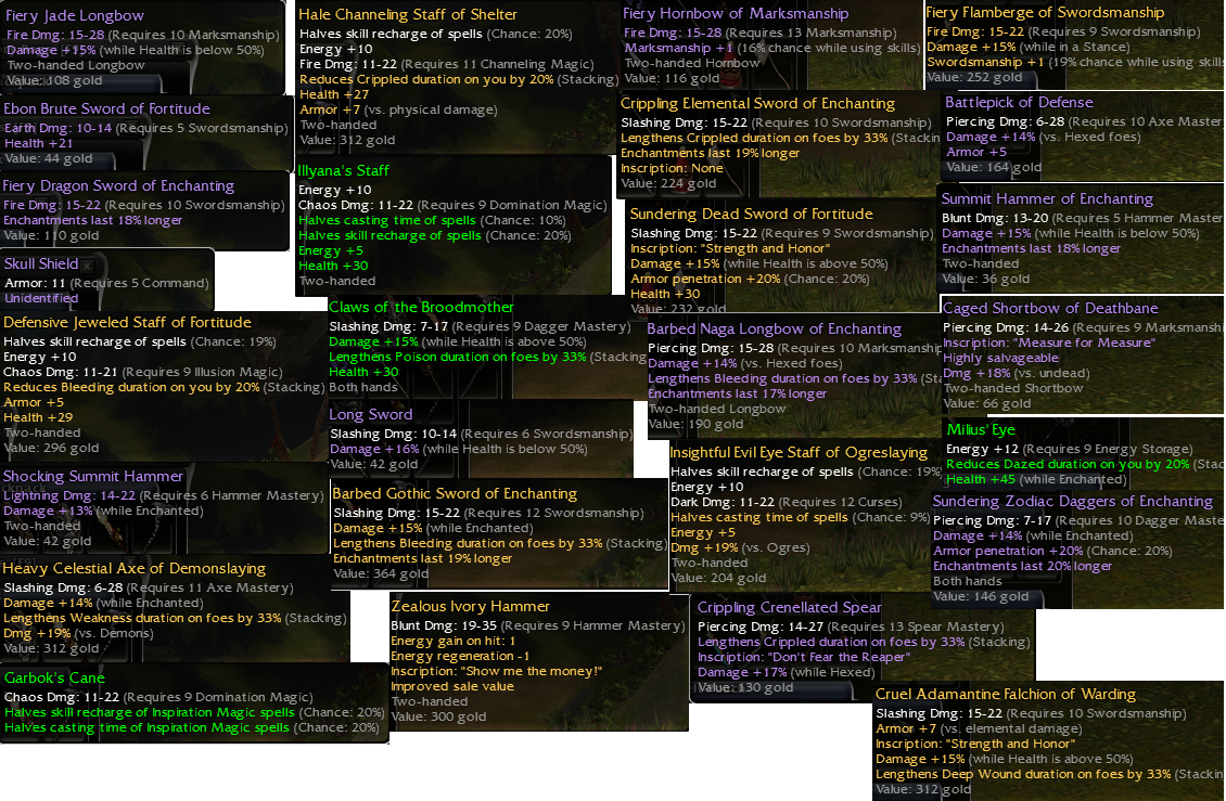1A: Fiery Jade Longbow1B: Ebon Brute sword of Fortitude