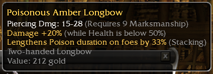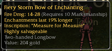 Be sure to check back frequently. I am known to rotate items out often. Please pay attention to auction end dates! Anything without a R/B that doesn't get a bid with in the auction window gets merched. I do chest running and various other forms of farming, so I don't have the storage space to keep anything that isn't selling. Good luck and have fun!