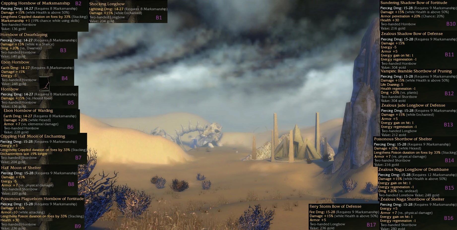 OS Bows, a bunch of postnerf Q8 (all Hornbows are stoneshards) and Q9s