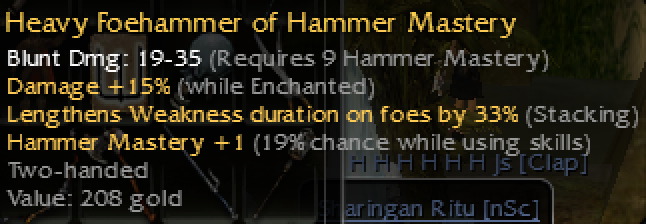 OS39) Amber Aegis Req10 Tactics Damage -2 while Enchant Health +59 while Hexed