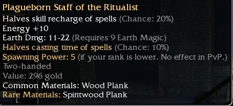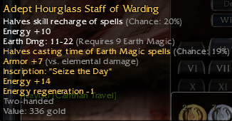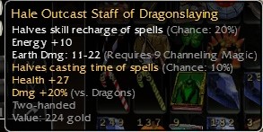 | Hale Conjuring Staff of Shelter q9 SpawnING | 11–22 Lightning / 224g | +10 Energy, +30 HP, +7 Armor, 20% Recharge/Cast (Restoration) |