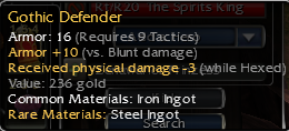 | Heavy Cleaver of Shelter q10 | 6–28 Slashing / 232g | +15% Damage (>50% HP), Weakness +33%, +7 Armor |