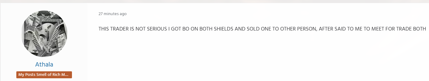You can wait for a long time because you won't have this shield, I prefer to sell it to Hate Core if he is still interested.