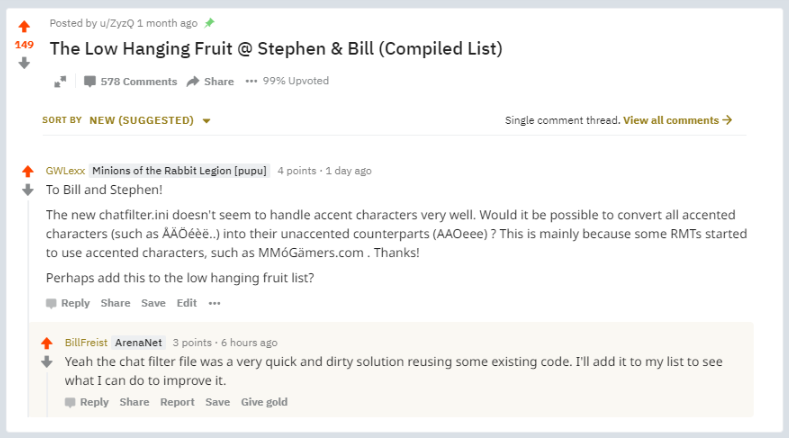 This is good to know. I've heard them say something similar quite a number of times as well. It may indeed be a whack-a-mole situation and it only seems like ANet isn't doing anything with reports when in fact they really do ban those accounts.