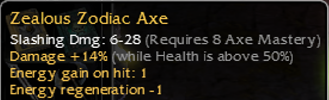 q8 imperfect Zealous Zodiac Axe Acolyte_36 January 18, 2022 at 12:05 AM Hey all,PC: Is this old thing worth anything since it's only 14^50?Thanks in advance