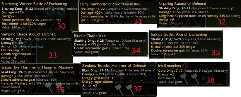 Hello, thought I'd get a price check on some OS weps and 3 insc ones before merching. Thanks