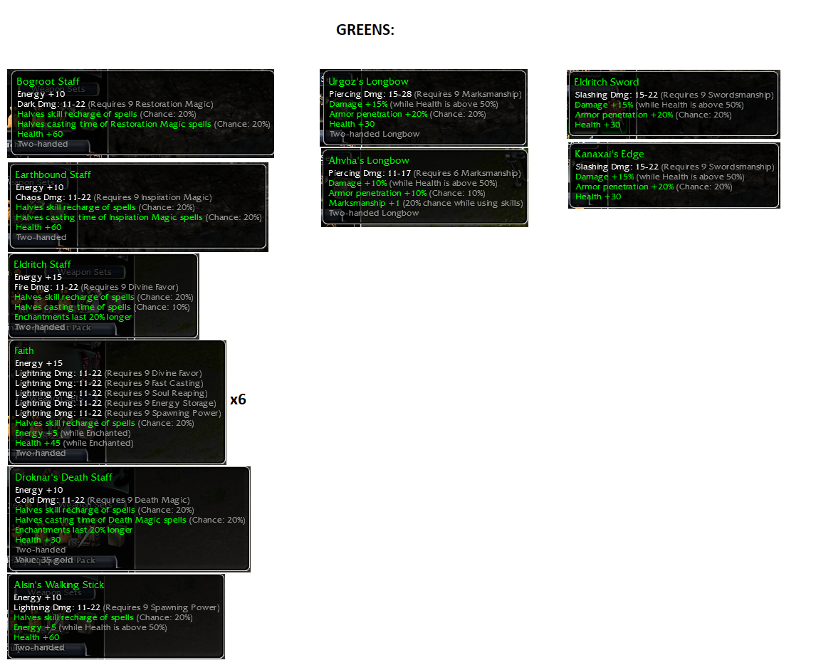 mini Unded yakk4. OS battlepick q9 5 ene / OS kamas q5 6-12 purple 13^50 / OS q9 chromium shards 5 ene / OS Jade sword q13 5 ene / OS cele staff q9 20^10 spawning / OS cele longbow q9 15^50 / OS gilded daggers q9 15 wS / OS q0 longbow 9-13 13% wE