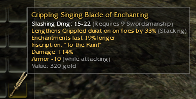 Q13 glacial blades from a locked chest that spawned next to a group of Skelk. Came with a +20% damage while below 50% hp Vengeance is Mine inscription, no other mods, and a 244 gold value. Got a shadowplay recording of it, incase the screenshot isn't enough proof.