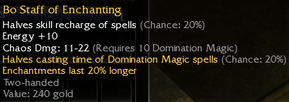 Q13 tac gothic defender illusion magic +1 20% +10a vs cold