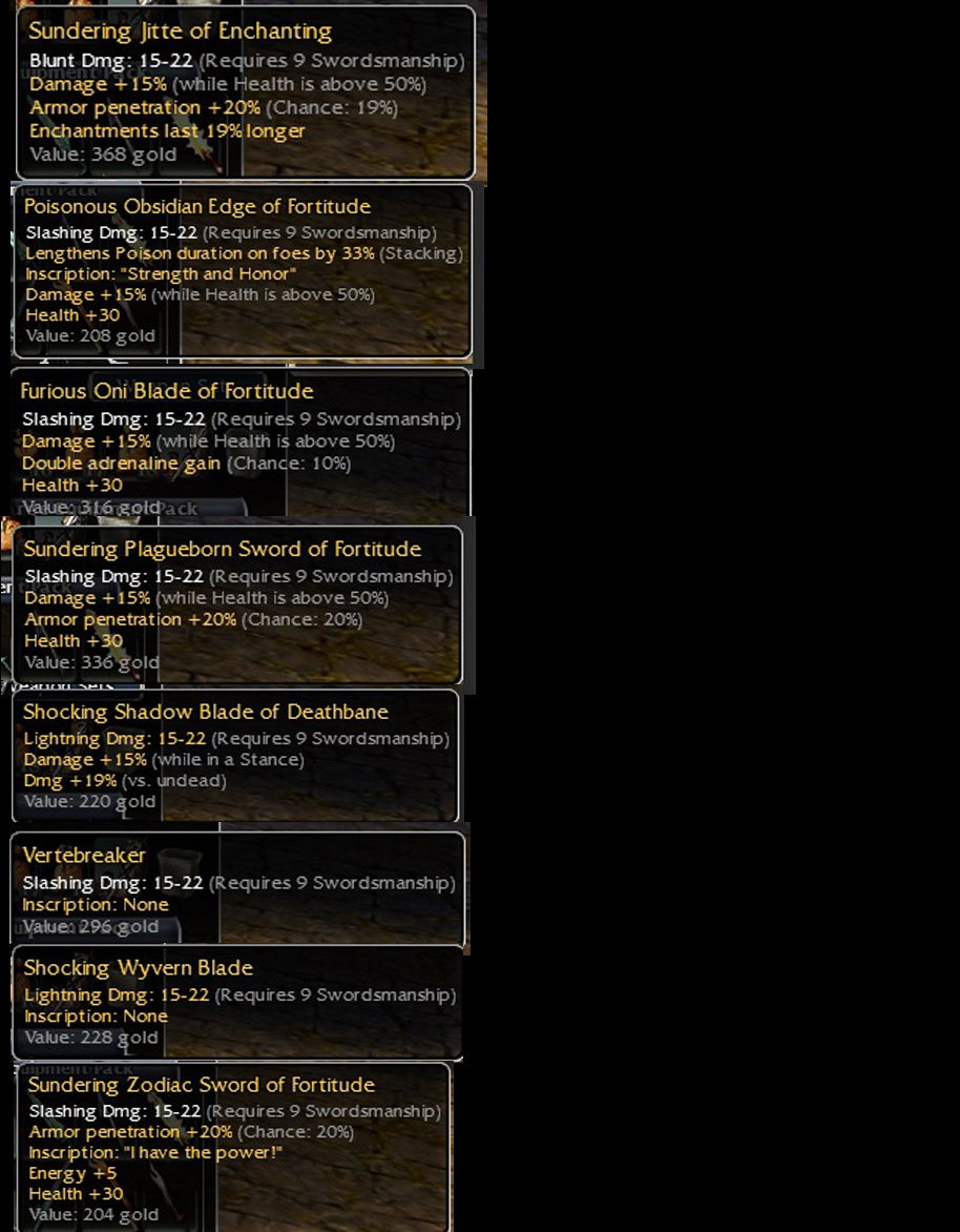 I'm trying to collect a q9 of every sword skin in the game. I'm missing a few (list below). Happy with either inscribable or OS (mod dependant).