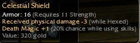 q10 Crystallized skin earth staff 20/20 OS - c/oq11s Celestial Shield -3 hex 20% death magic +1 - c/o - 25e -- IAmSole