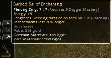 Sai q9: +5e, +20% enchanting, Barbed 3)