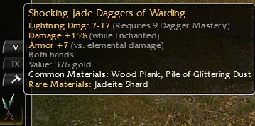 Jade Daggers q9: +15/Enchanted, +7 Elemental, Shocking 4)