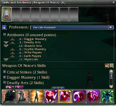 Main enemies here are Outcasts. Deathhands are necromancers that can strip your enchantments if you don’t have SF on. Melee outcasts (warriors and assasins) are dangerous as they can strip your enchantments and stances is they hit you. So its best to be quick around them. After a few run you get to know when you need to keep up your enchantment and when you can drop them as you will be able to restart them after passing the groups (of course with the 50% speed boost up).