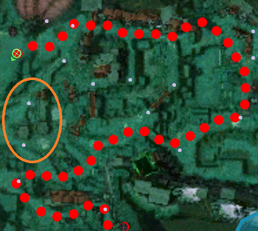 The area in the orange circle is controlled by Creeping Carp, I avoid this area as much as possible as couldn’t find a good way to avoid them. They are fast and strip your enchants through SF, if they touch you. The rest of the area is easy.
