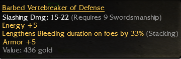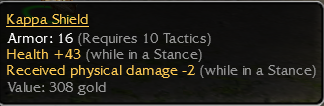 Bladed Shield - Q 9 Str - +10 vs Demons + Reduces Dazed duration on you by 20% BDS Q 11 Prot Froggy Q 10 Curses Froggy Q 12 Restoration Emerald Blade Q 12 Plagueborn Maul Q 9 15^Stance Longsword Q 11 +5e IGN: Washma Butt