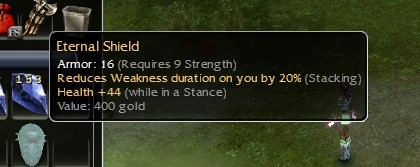 OS Eternal Shield q9 Strength, Reduce Weakness 20%, +44HP in stance w00tie October 24, 2022 at 11:04 PM Don't wanna sell it to the merchant... any1 willing to bid on it? The content cannot be displayed because it is no longer available.
