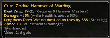 9. Zodiac Hammer Q9, +15% damage over 50% HP