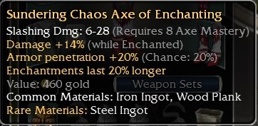 this axe sold for offer i could not tern down posting one more q8 prenerf 14% ench chaos axe soon