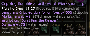 The longbow was a quest reward from proph but it's max for q3 so I thought it might be worth something. I think it's feathered skin. The storm artifact is 420gv ^^. Thanks.