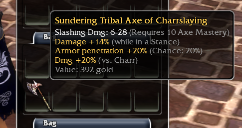 Long story short. I bought it during the Mausoleum event & paid 140k (100k+10 Rubies IIRC). I posted it on Guru way back & no one cared. My account got hacked around 2013 & the unassuming Axe survived! I long since quit & it remains dead on my account. I don't play so Fort Knox level of wealth doesn't mean a lot to me, but make me some offers maybe I'll consider it. Maybe it'll tempt me to play again!