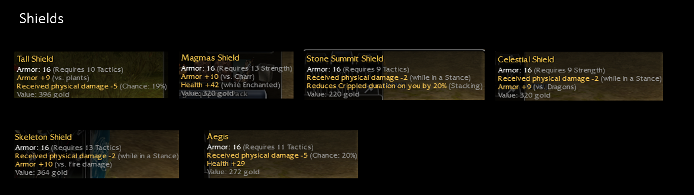 Q13 tact -2 stance +10 fire Skeleton Shield