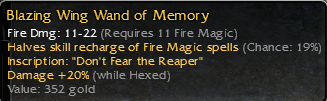 Halves skill recharge 20%/ Halves casting time of fire magic 20%