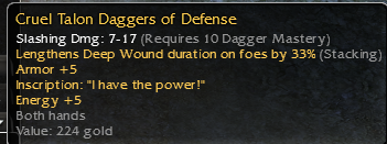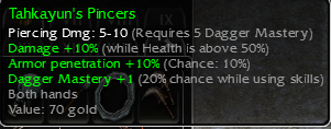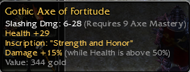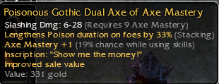 Lengthens Poison Duration on foes by 33%, Axe Mastery +1,Show me the money