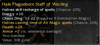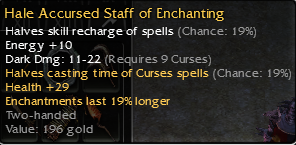 Halves skill recharge 20%/ Enchantments last 20% longer / Reduces blind duration by 20%