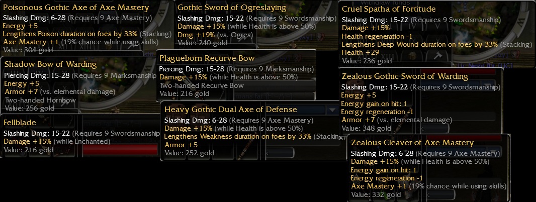 Wand - Of Necro +5, Of Necro +4, Of Mesmer +5, Of Ele +5, Of Ranger +5, Memory 20%