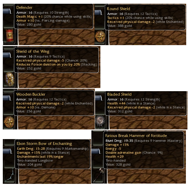 q9 tac Bronze Shield +10 Demons +44HP : 5a