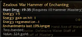 The hammer itself is going to be really low. Sundering mod is going to be worth something and soul reaping +5 will be worth something also resulting in the predicament of figuring out which is worth more to buyers really. Devona can 100% MM with a hammer and +5 SR mod on it. Just tested a wand without energy mod and a shield, she upkeeps 5-9 minions throughout the dungeon.