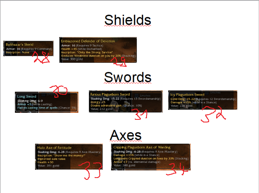 Shields and Off-Hands insc.: