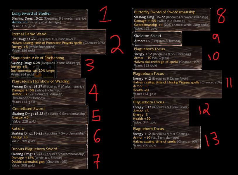 PC Q8 and Q9 Plagueborn items + others Haisho July 14, 2024 at 5:21 PM Found some stuff in my storage and wanted to see if it was worth anything Thanks!