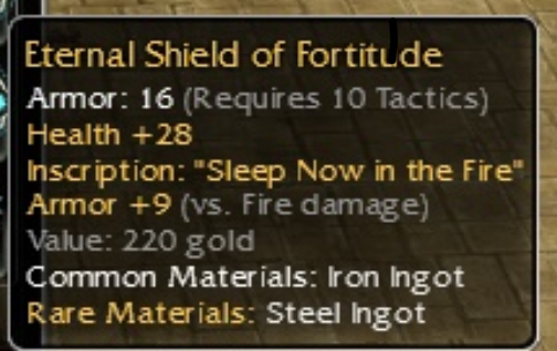 OS Zodiac Shield, q13 Tactics +10 vs Demons, -2 while enchanted