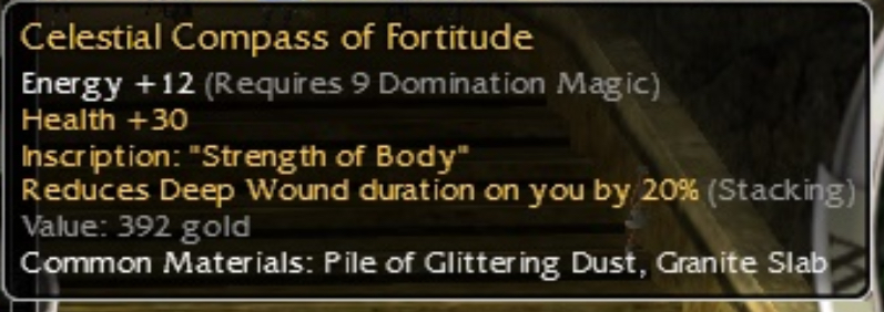 Wand: Dervish x2, Elementalist x6, Mesmer x4, Monk x4, Necromancer x1, Paragon x1, Ranger x2, Ritualist x3