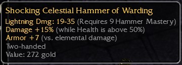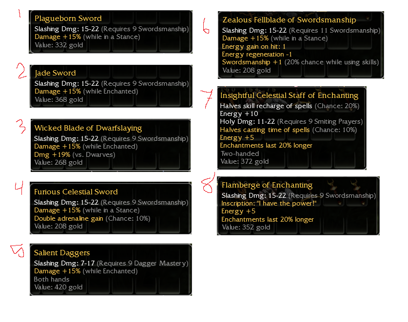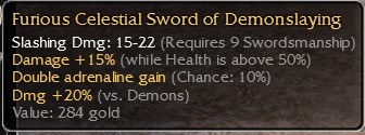 sea purse most - idk, maybe more than 10a even. cele hammer 10e. sword mod demonslay 10e+. shield handle 45wE up to 5e. 30hp mods 1e. rest merch.