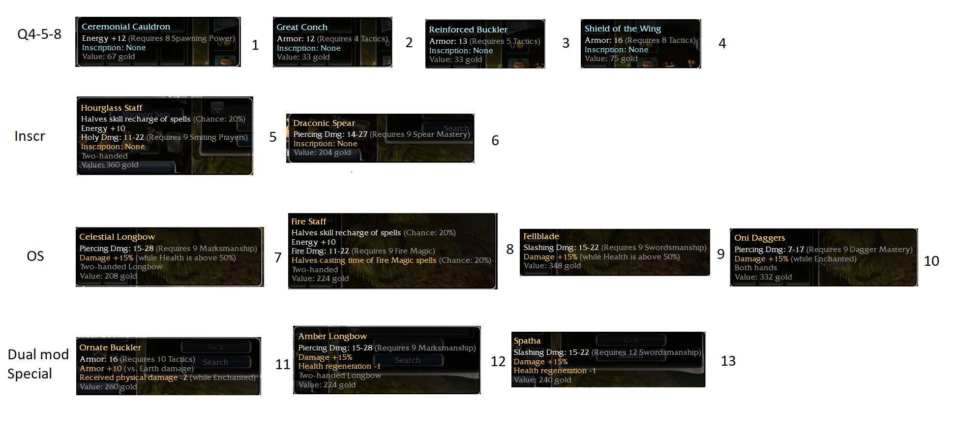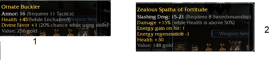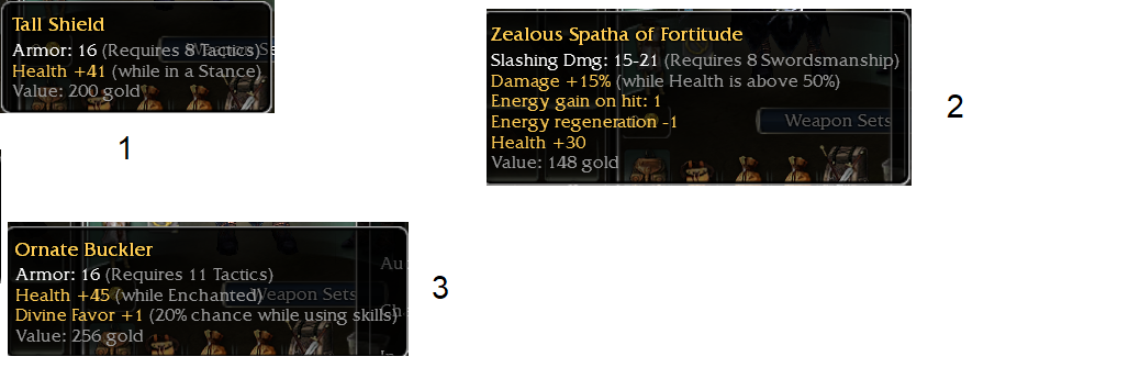 - OS Ornate Buckler Q11 tac +45 W/e, +1 Divine Favor/20%