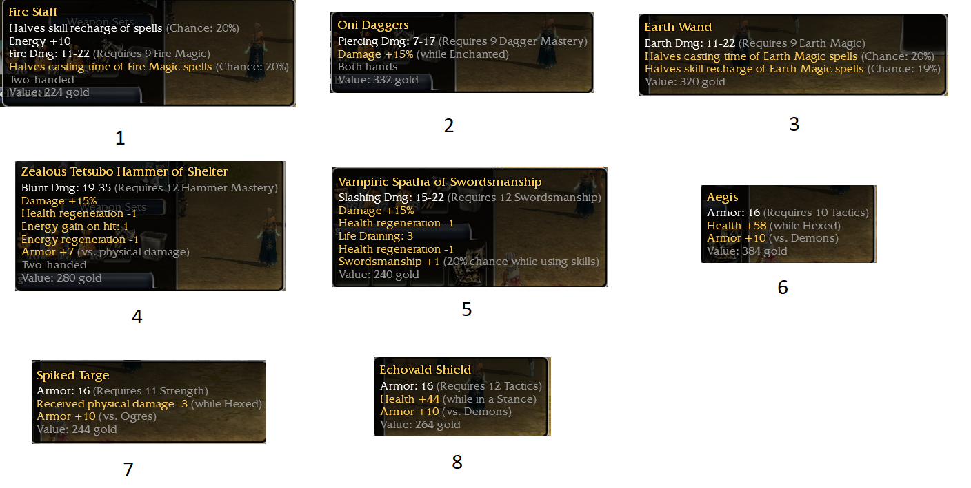 Usefull to know for the next drop. Even the 20/20 OS staff or the +10vs demon and 45/While in stance , or the OS chaos axe 15^^50 ? -