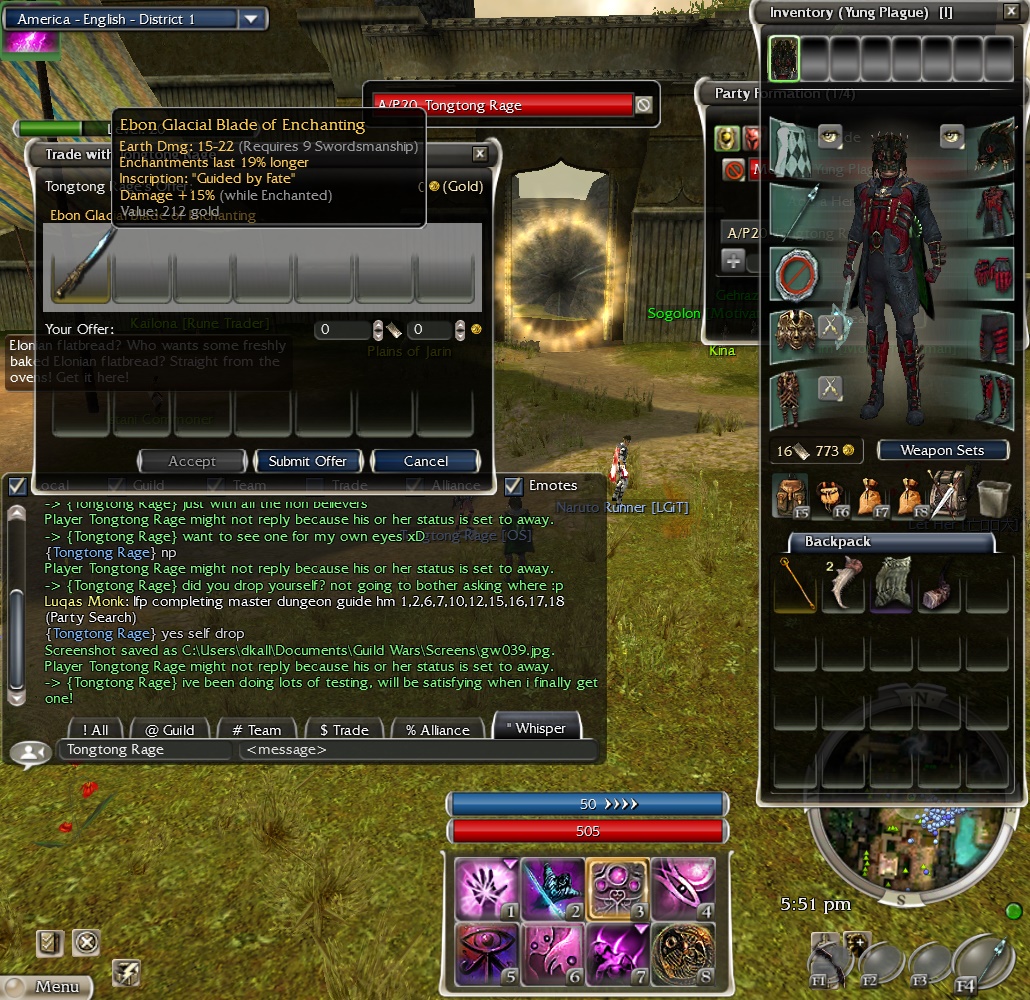 I finally got to see one with my own eyes, I am still searching all over Eye Of The North for one for myself, I look forward to dropping and will custo it as soon as I get it. Sad people are gate keeping in this day and age. (We all know warriors need that extra 20% damage.) Makes my search more fun I guess though! Anyone else had any luck on the hunt?