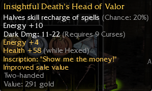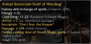 A1: - 5 Physical 20% A2: Health +30(Sold) A3: Rechieved physical -2 While enchanted A4: Fire Magic ü1 19% A5 Reduces Blind -