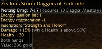 | Dagger Handle of Fortitude | HP +30 | 1 | |