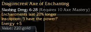 | Axe Grip of Enchanting | Enchants lasts longer 20% | 1 | |