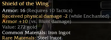 Shield of the Wing q10 tactics -2wE +10 vs. Blunt (SW)