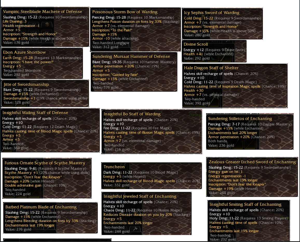 Ganshu's REcordThe Righteous HandPheonix's Retribution x2Droknar's Dom Scepter