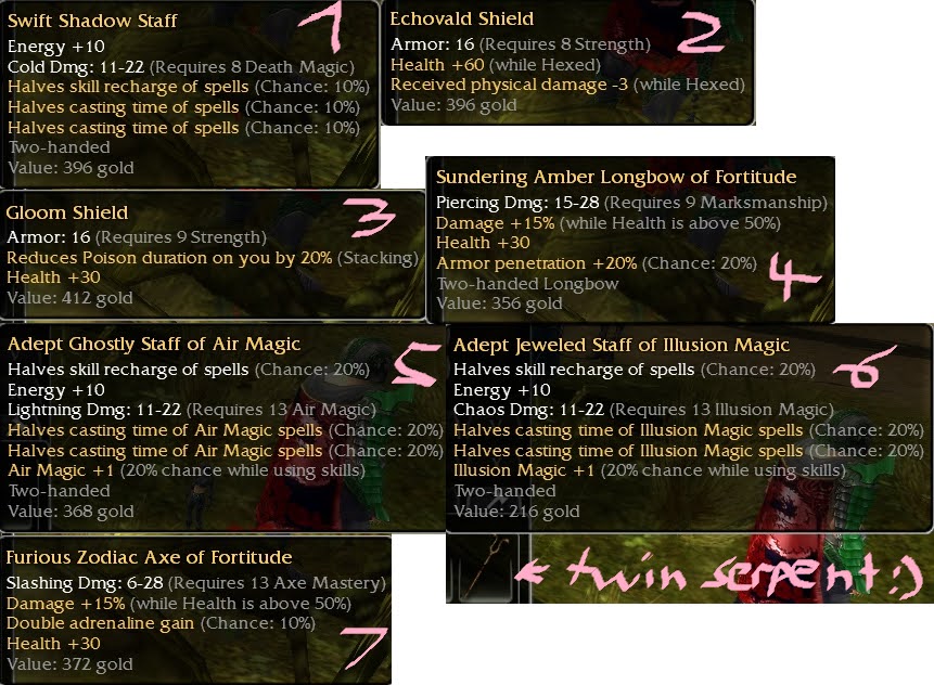 Fellblades any mods, but they have to be q8 gold and max dmg...no grapes, white or blue pls